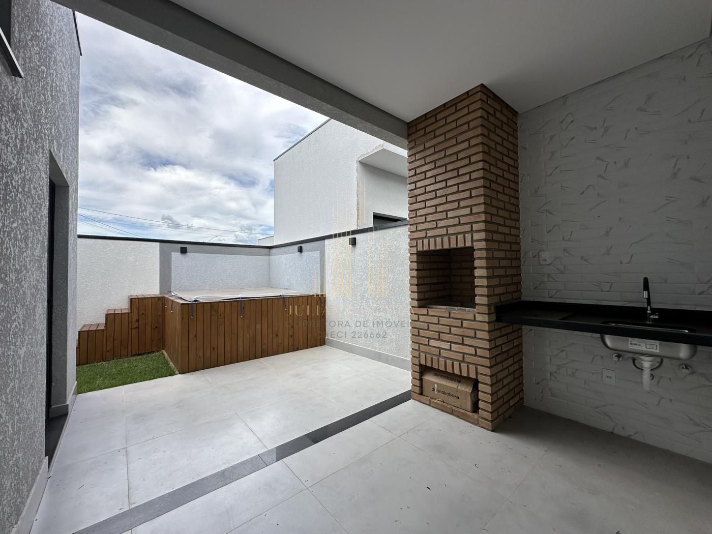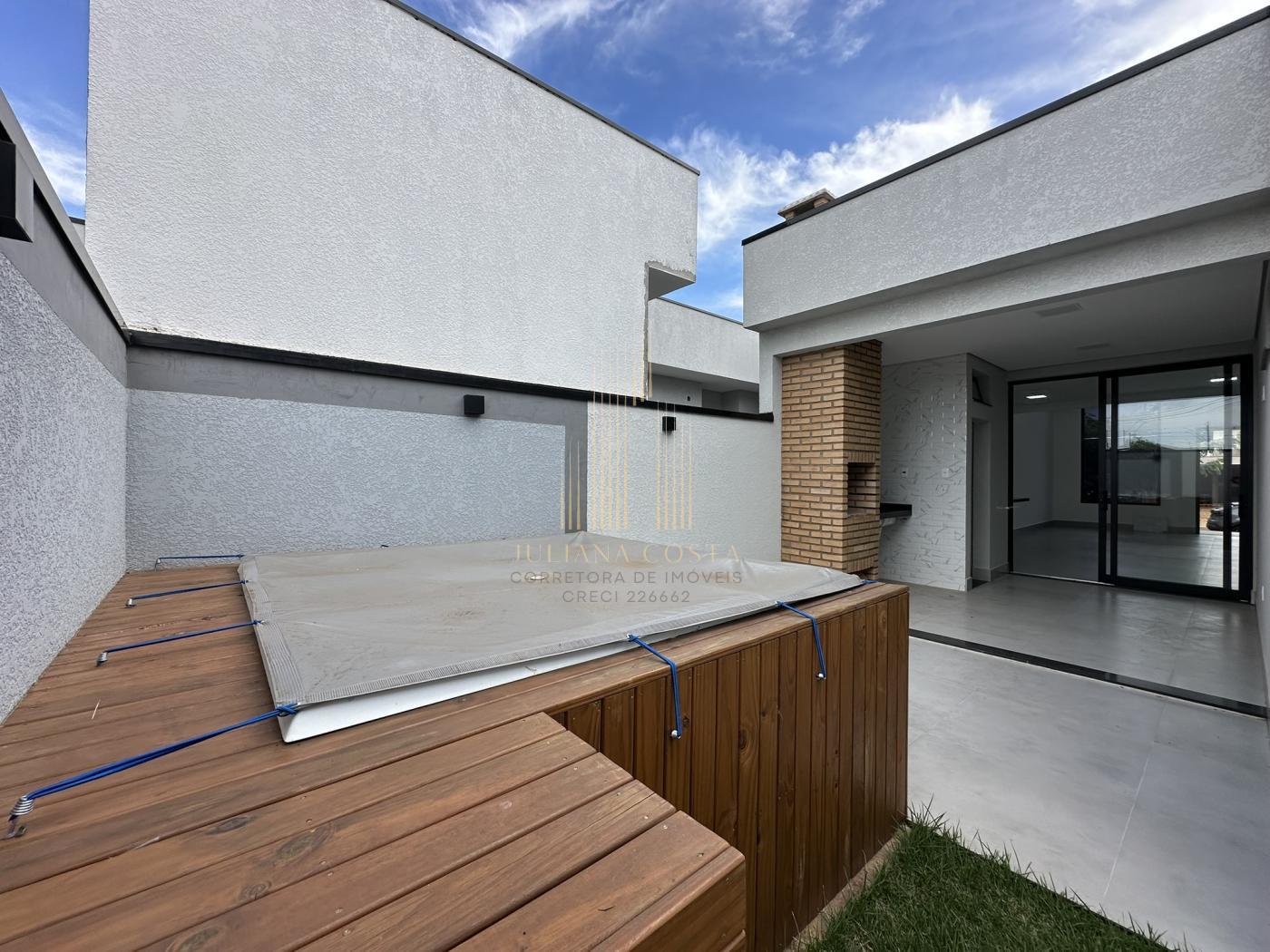 Linda casa com excelente acabamento, fachada com iluminação em led e conta com 3 suítes, sala ampla 2 ambientes e com pé direito alto, cozinha com pia, quintal gramado e com Jacuzzi, banheiro externo, lavanderia isolada com acesso por dentro e por fora, vaga de garagem pra 2 carros;
