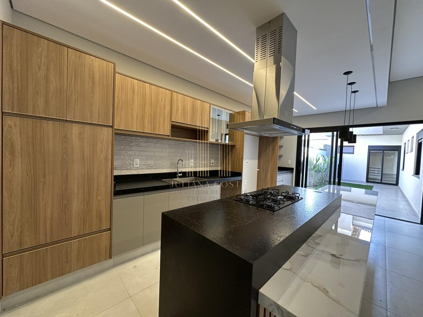 🍽️ Cozinha com ilha grande, cooktop, rica em detalhes e planejados com espaço para geladeira side by site