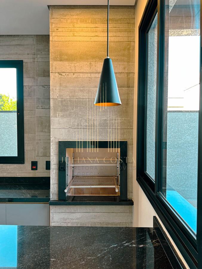 • Cozinha gourmet com churrasqueira integrada, planejados, ilha, cooktop, coifa e forno