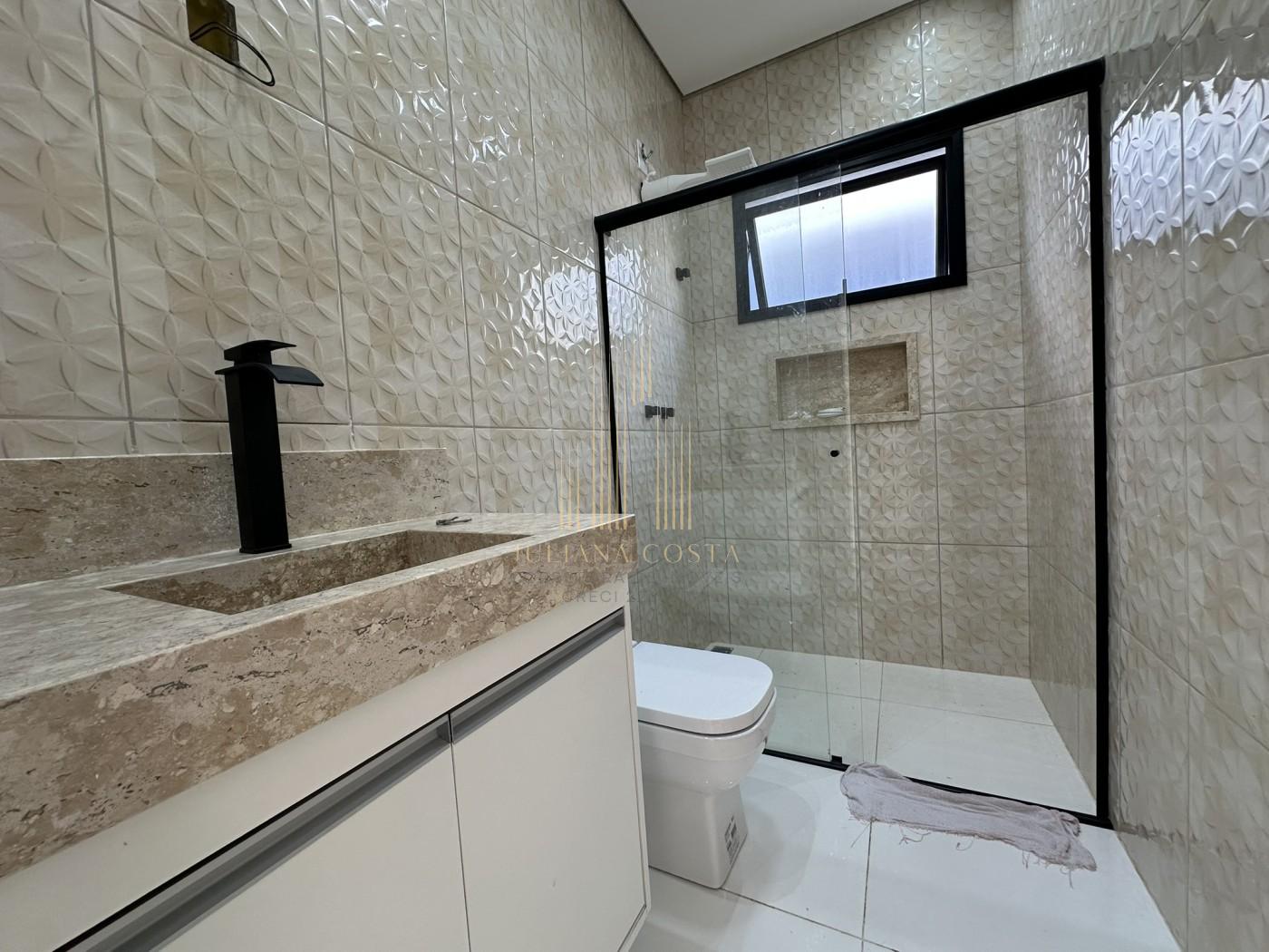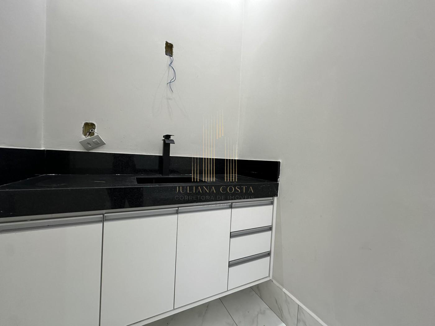 Casa toda em porcelanato com 3 suítes, cozinha com pia e bancada, sala de estar, quintal com grama, área gourmet interna independente, v...